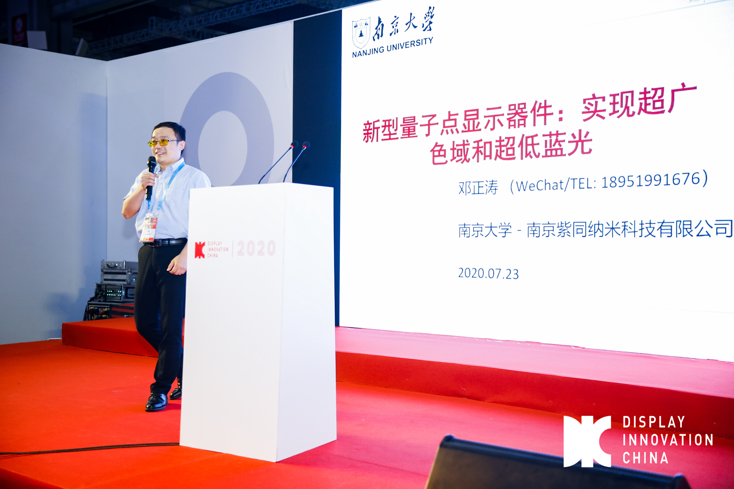 在上午的时间里,南京大学邓正涛教授,首位上台,就《新型量子点显示器件:实现超广色域和超低蓝光》这一题目展开演讲